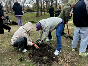 В акции также приняли участие сотрудники Следственного комитета, таможни, студенты и просто неравнодушные жители. Под песни военных лет работа спорилась, а чернозем принял молодые саженцы.