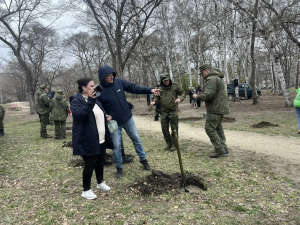 Суворовский парк Уссурийска преобразился: юнармейцы вновь присоединились к международной акции «Сад памяти». В этом году событие стало особенным — оно приурочено к 85-летию Суворовского военного училища.