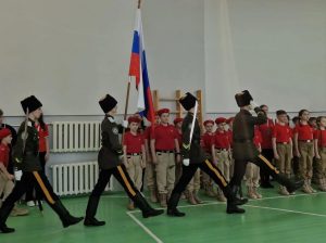 Первыми к испытаниям приступили ученики младших классов — они открыли соревнования строевой подготовкой.
