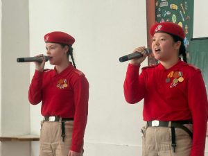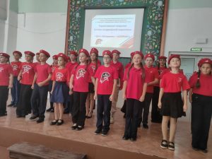 Торжественная часть мероприятия началась с выноса флага Российской Федерации и юнармейского знамени знаменной группой отряда «Бригантина» ООШ № 8 с. Нежино. Гимн России исполнил юнармейский хор «Созвездие» МБОУ СОШ № 1 с. Вольно-Надеждинское.
