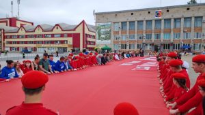 В честь Года защитника Отечества участники Слета развернули копию Знамени Победы.