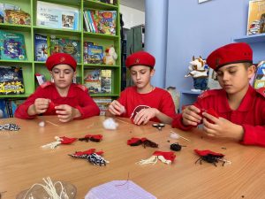 Юнармейские отряды Дальнегорска (школы № 17, 2, 21, 8) и с. Сержантово (школа № 12) активно участвовали в мастер-классах: изготавливали армейский душ, памятные сувениры, обереги, а также написали письма со словами поддержки и пожеланиями скорейшего возвращения домой.