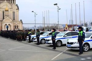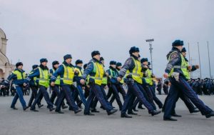 По итогу смотра сотрудники полиции прошли по Центральной площади торжественным маршем.