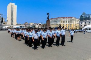 25 сентября на Центральной площади Владивостока состоялся общегарнизонный совместный инструктаж нарядов, заступающих на службу по охране общественного порядка и обеспечению безопасности дорожного движения в дальневосточной столице, в котором приняли участие и юнармейцы-кинологи со своими четвероногими воспитанниками.
