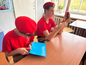 Юнармейцы делали открытки искренне, от всего сердца, потому что открытка, сделанная своими руками — это короткое письмо, в котором принято передавать душевное тепло.