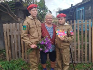 Юнармейцы отряда «Рубеж» МОБУ ООШ с. Марково Лесозаводского округа поздравили односельчан-пенсионеров с праздником