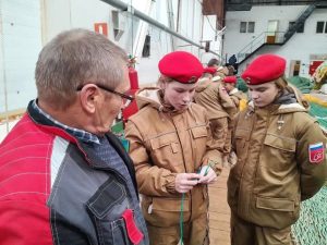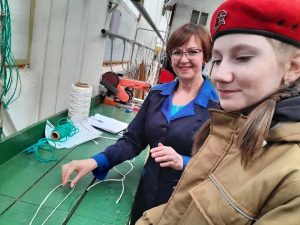 Юнармейцы посетили цех орудия лова ПАО «ПБТФ» и приняли участие в мастер‑классе по вязанию морских узлов, который провел начальник орудия лова Есавнин Андрей Анатольевич.