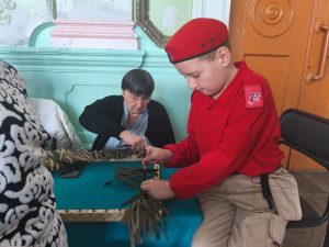Также, юнармейцы сами приняли участие в мастер-классах по плетению сетей и нашлемников, которые организовала волонтерская группа с. Углекаменск «Теплые руки — Добрые сердца».