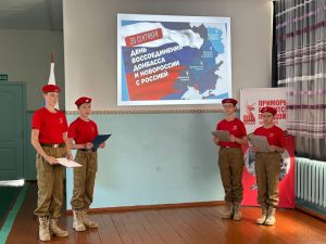 В муниципальных округах края также прошли митинги, концерты, тематические выставки, посвященные воссоединению, церемонии возложения цветов к памятникам и мемориалам в честь событий 2022 года, в которых приняли участие и юнармейцы.