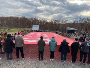 По итогам Слета все участники, во главе с начальником штаба «ЮНАРМИИ» Михаилом Любецким развернули масштабную копию Знамени Победы.